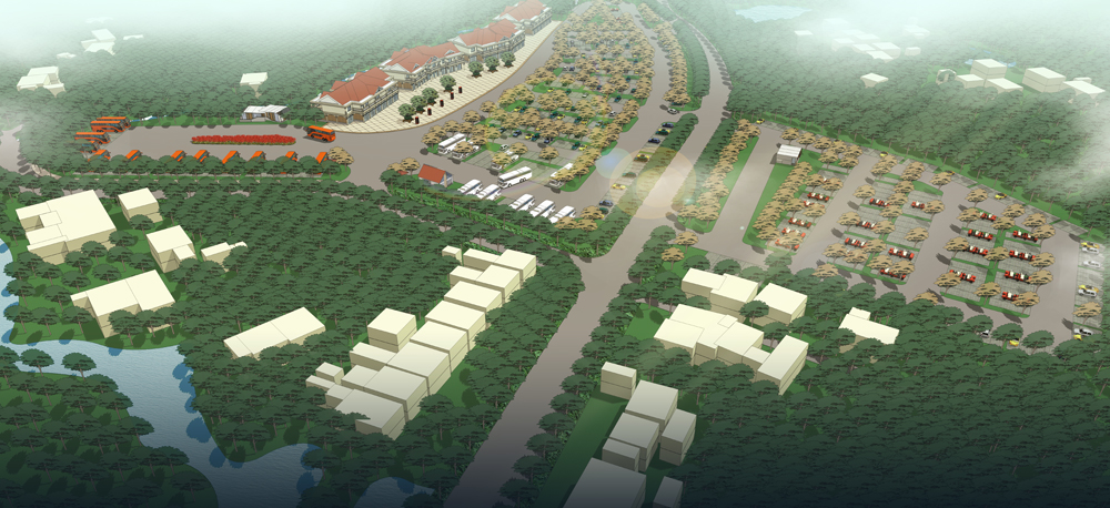 建筑設(shè)計(jì)主要采用簡(jiǎn)歐風(fēng)格,遵循“尊重自然、綠色生態(tài)、建筑風(fēng)貌、景觀營(yíng)造、可持續(xù)發(fā)展、低碳環(huán)保”的原則,布置在景區(qū)主干道右側(cè)和左側(cè)部分地塊,主要滿(mǎn)足大巴、中巴、小車(chē)、電瓶車(chē)以及回遷居民住宅。規(guī)劃區(qū)停車(chē)場(chǎng)設(shè)有四個(gè)車(chē)行主要出入口,其中兩個(gè)主要滿(mǎn)足停車(chē)場(chǎng)內(nèi)部車(chē)輛進(jìn)出,一個(gè)滿(mǎn)足電瓶車(chē)出入停車(chē)場(chǎng),一個(gè)滿(mǎn)足回遷建筑出入。建筑前廣場(chǎng)主要考慮人流集散,后庭院主要突出景觀營(yíng)造,通過(guò)對(duì)商業(yè)零售、回遷居住、景區(qū)服務(wù)、汽車(chē)維修等配套商業(yè)設(shè)施的建設(shè)滿(mǎn)足游客游覽需求。