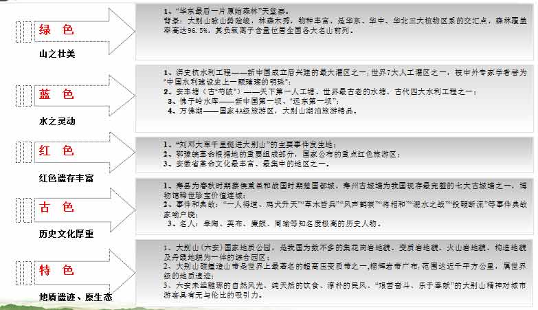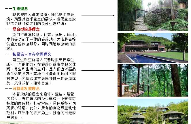 以養(yǎng)生度假、生態(tài)休閑為功能一體的中國(guó)高端生態(tài)度假村、皖西山地度假旅游目的地。