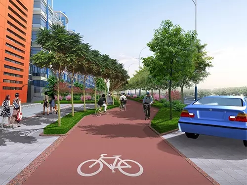 ①實現(xiàn)路面的硬化平整,完善信號燈、路燈等設(shè)施,結(jié)合街道空間設(shè)計停車位。