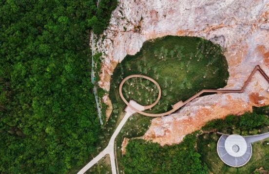 位于湯山國(guó)家旅游度假區(qū)內(nèi)湯山山體南側(cè),是一座廢棄的采石場(chǎng)礦坑,宕口遠(yuǎn)看傷痕累累,走進(jìn)卻氣勢(shì)恢宏——植物已經(jīng)悄然的從破碎的石縫中慢慢長(zhǎng)出,與冷峻的石壁搭配成漂亮的肌理;巨大的采石場(chǎng)的尺度讓人覺(jué)得不可觸、不可及,但是熱血沸騰。
